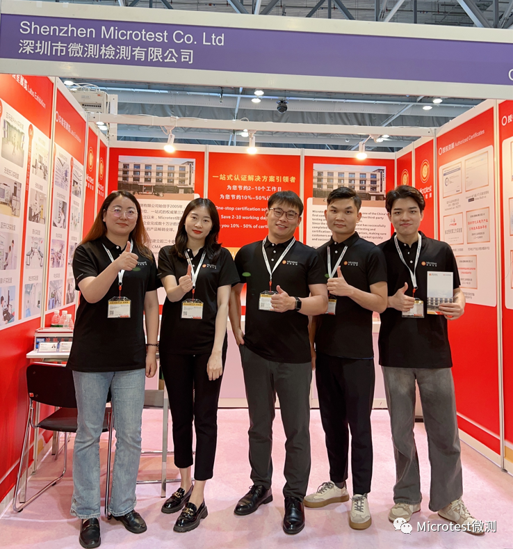 展會現場,我司認證同事為前來微測檢測展位咨詢的客戶一對一解疑答惑,以專業的檢測認證知識和優質的服務給咨詢者留個了良好的印象。