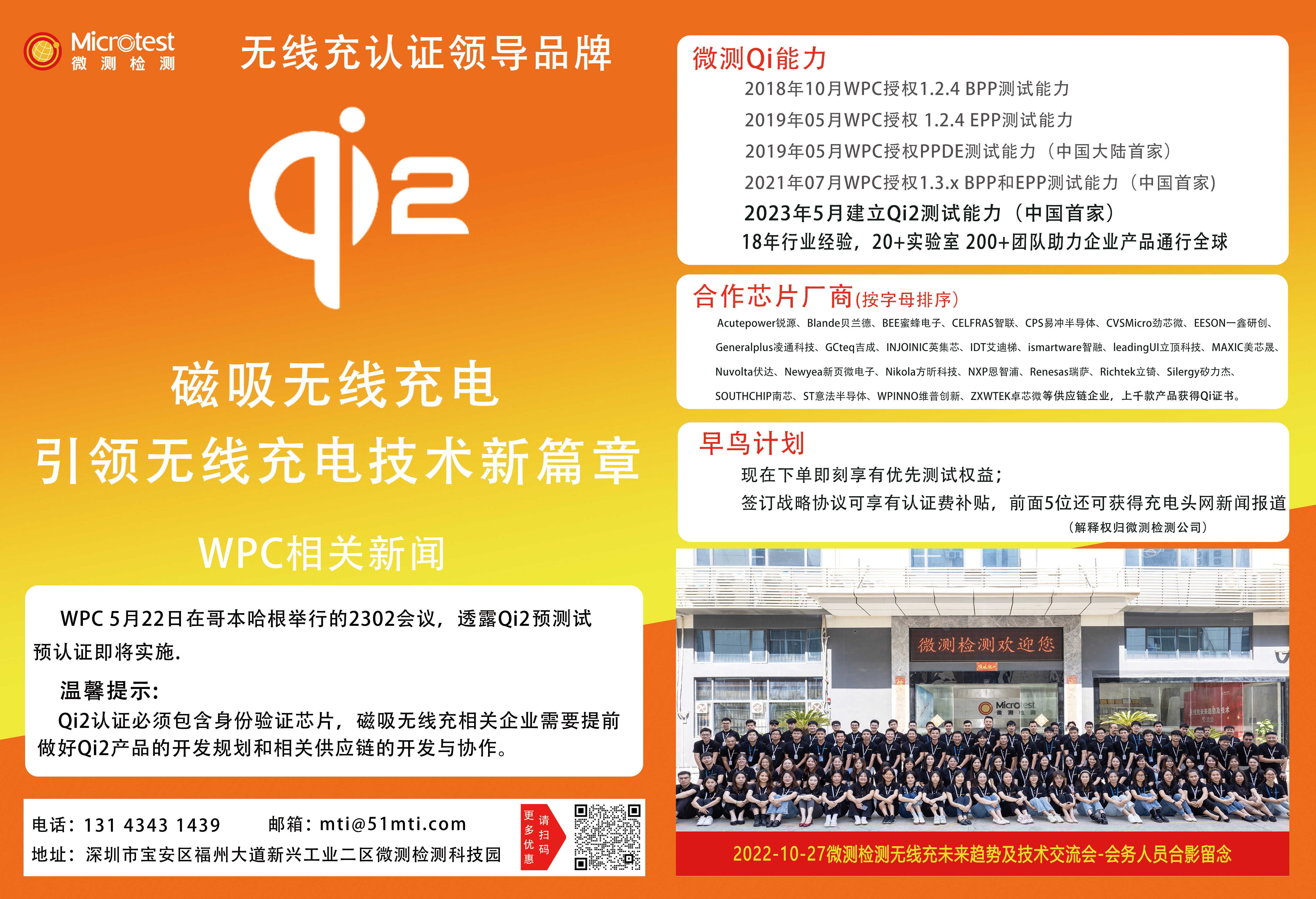 微測檢測已擁有中國大陸唯一一臺Qi2.0 MPP設(shè)備!現(xiàn)設(shè)備已調(diào)試完成,并且公司已經(jīng)完成實驗室人員的上崗培訓(xùn)。Qi 2.0 測試正式啟動!歡迎大家預(yù)約測試,搶占風(fēng)口井噴市場先機(jī)!