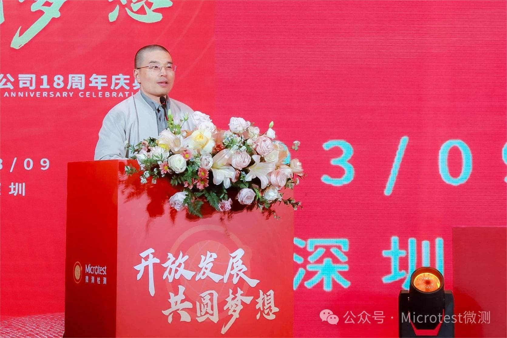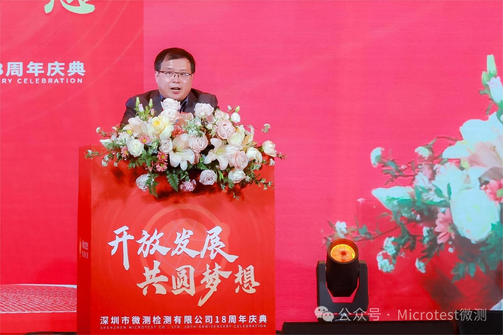 慶典伊始,微測檢測總經理薛曉棟先生發表了熱情洋溢的歡迎致辭,并回顧了微測檢測18年來的發展歷程,強調“開放發展”的理念。薛曉棟先生表示,正是得益于各位合作伙伴的開放心態和深度合作,微測檢測才能在激烈的市場競爭中脫穎而出,不斷實現技術創新和服務升級,同時還強調“作為企業,何謂正確”的理念:始終遵循測試標準、秉承專業服務價值,不讓客戶走一步冤枉路;結合市場環境來制定公司價格體系,不讓客戶花一分冤枉錢。最后,薛曉棟先生展望檢測認證行業未來的發展方向,呼吁大家繼續攜手同行,共圓夢想!