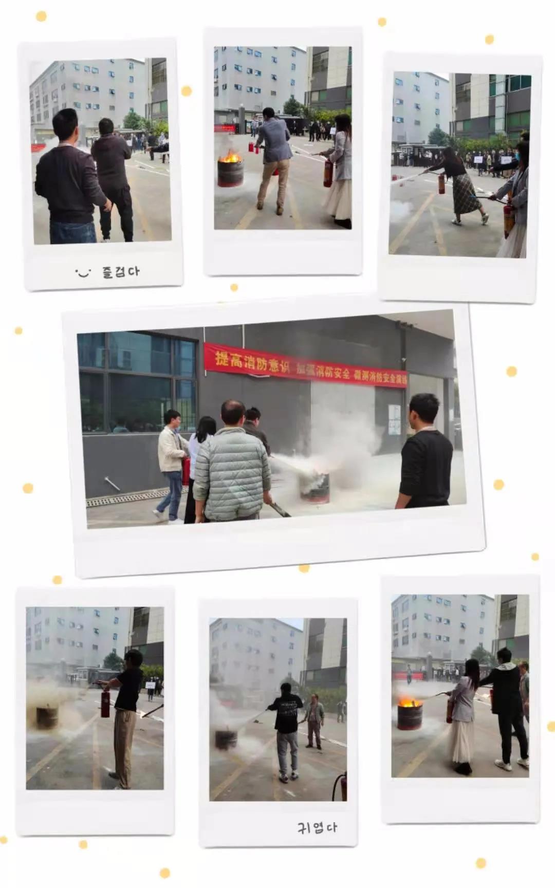 教練為此次參與消防演習人員講解消防器材使用方法、疏散逃生注意事項。為增強員工對滅火器、消防水帶的實際操作能力,教練現場指導示范,全體員工除了體驗模擬火場逃生外,也實地參與了用干粉滅火器對現場模擬火點進行滅火。