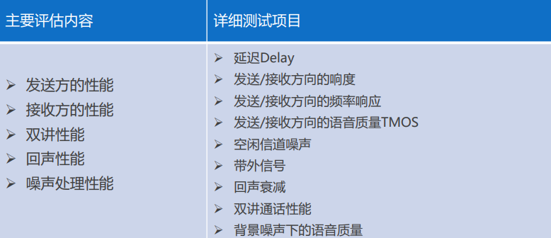 測試內容與窄帶和寬帶無異。主要測試內容為車機發送端與接收端性能,雙講性能,回聲性能以及噪聲處理性能。且超寬帶與前兩個版本的窄帶與寬帶不同,相比于窄帶的8KHz以及寬帶的16KHz采樣率,超寬帶最大支持32KHz(有線)與48KHz(無線)的通話采樣率,同時超寬帶的頻段范圍達到50-14000Hz,全寬帶達到20-20000Hz)測試項目與寬帶和窄帶無異。