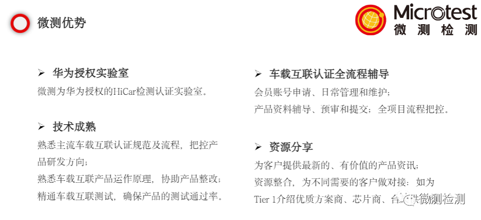 微測(cè)檢測(cè)擁有市面主流車(chē)載互聯(lián)檢測(cè)認(rèn)證能力(HUAWEI HiCar、Apple CarPlay、Android Auto、Baidu Carlife),并且是華為HiCar官方授權(quán)實(shí)驗(yàn)室,在車(chē)載互聯(lián)領(lǐng)域擁有超8年經(jīng)驗(yàn),能夠?yàn)榭蛻籼峁┮徽臼綑z測(cè)認(rèn)證服務(wù)!