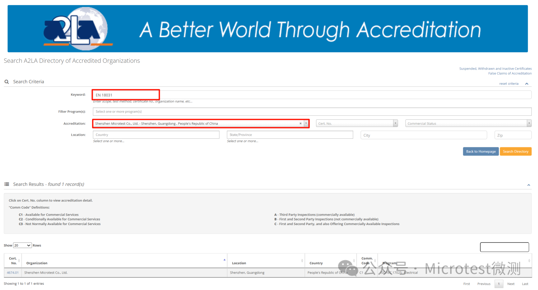 美國實驗室認可協會(A2LA)作為美國規模最大的實驗室認可機構,也是國際實驗室認可合作組織(ILAC)的成員之一。A2LA 的認可流程依據國際標準執行,旨在確保被認可組織具備相應的技術能力以及完善的質量管理體系,從而持續產出可靠、精準、可信的結果。通過 A2LA 認可的實驗室,在質量管理體系、技術實力、人員資質、設備校準等多個維度均符合國際權威標準,能夠為全球不同行業和客戶提供高質量的檢測服務。
