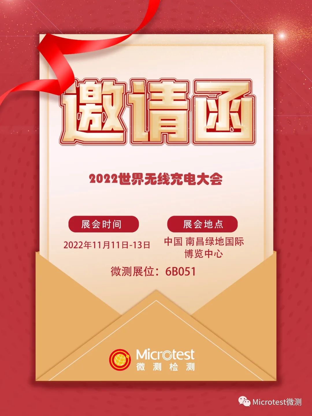 您好!非常感謝大家長期以來對微測檢測的大力支持?!?022世界無線充電大會》明日開展,在此,我們真誠地邀請您蒞臨我司展位參觀指導,恭候您的到來。