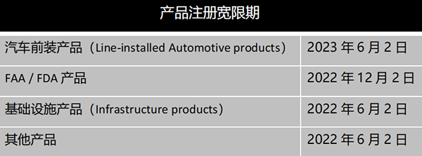 從2021年6月2日開始,1.3產品已經可以開始進行注冊認證,同時1.2.4寬限期生效,在寬限期時間內,可以繼續注冊和制造1.2.4產品,超過寬限期時間,不可以對1.2.4產品進行注冊與制造。