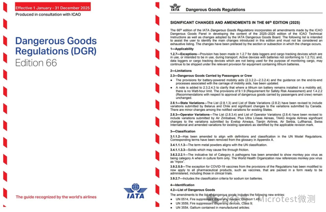 近日IATA(國際航空運輸協會)發布了第66版DGR(危險品規則),從2025年1月1日起,第66版IATA危險品條例(DGR)和第12版鋰電池運輸條例(LBSR)正式生效。