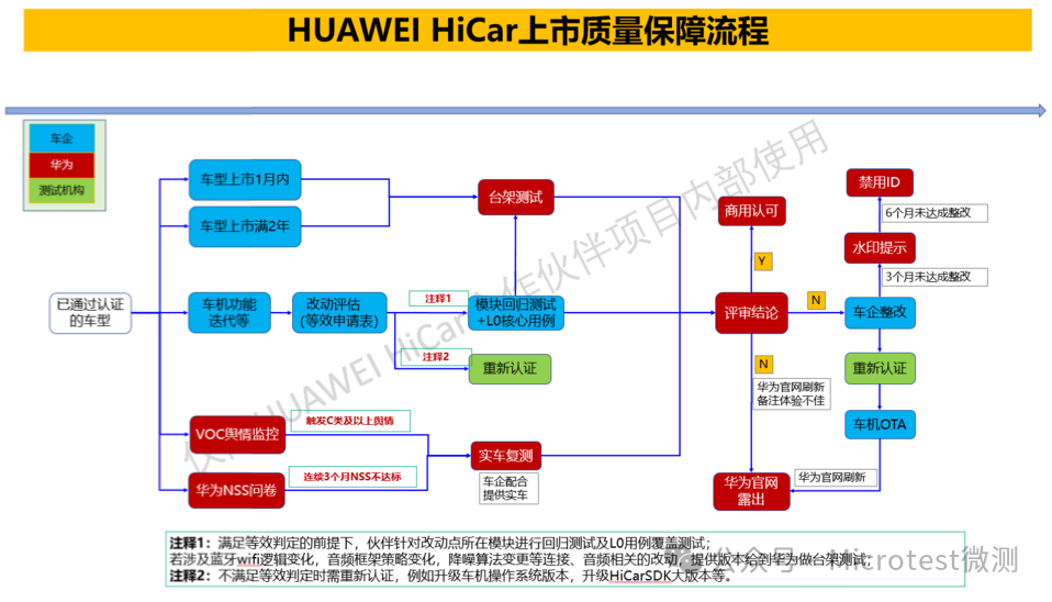為切實保障上市車型的HUAWEI HiCar的用戶體驗,確保用戶實際體驗與認證準出時的體驗一致,華為針對現有流程和標準進行了細化。