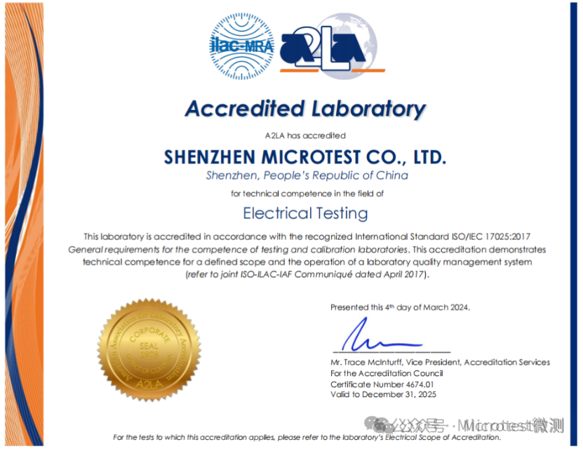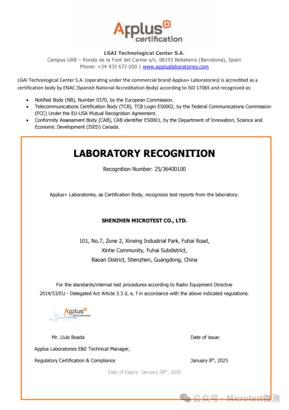 權威認證彰顯實力: Microtest微測檢測已成功通過國際知名認證機構Applus針對EN 18031系列標準的嚴格審核,獲得相應資質。同時,其網絡安全實驗室依據EN 18031系列標準進行的能力范圍,也已通過美國A2LA(American Association for Laboratory Accreditation)依據ISO/IEC 17025標準的國際技術評審,這標志著Microtest在該領域的檢測能力獲得國際權威認可。
