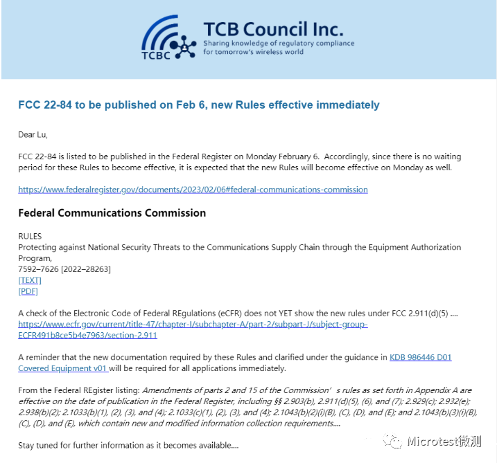 根據美國FCC最新通知,2023年2月6日起,申請FCC ID要求提供美國代理商信息(申請商是美國公司的除外);并繼續禁止實體名單中的企業申請FCC ID。該通知立即生效,沒有過渡期。