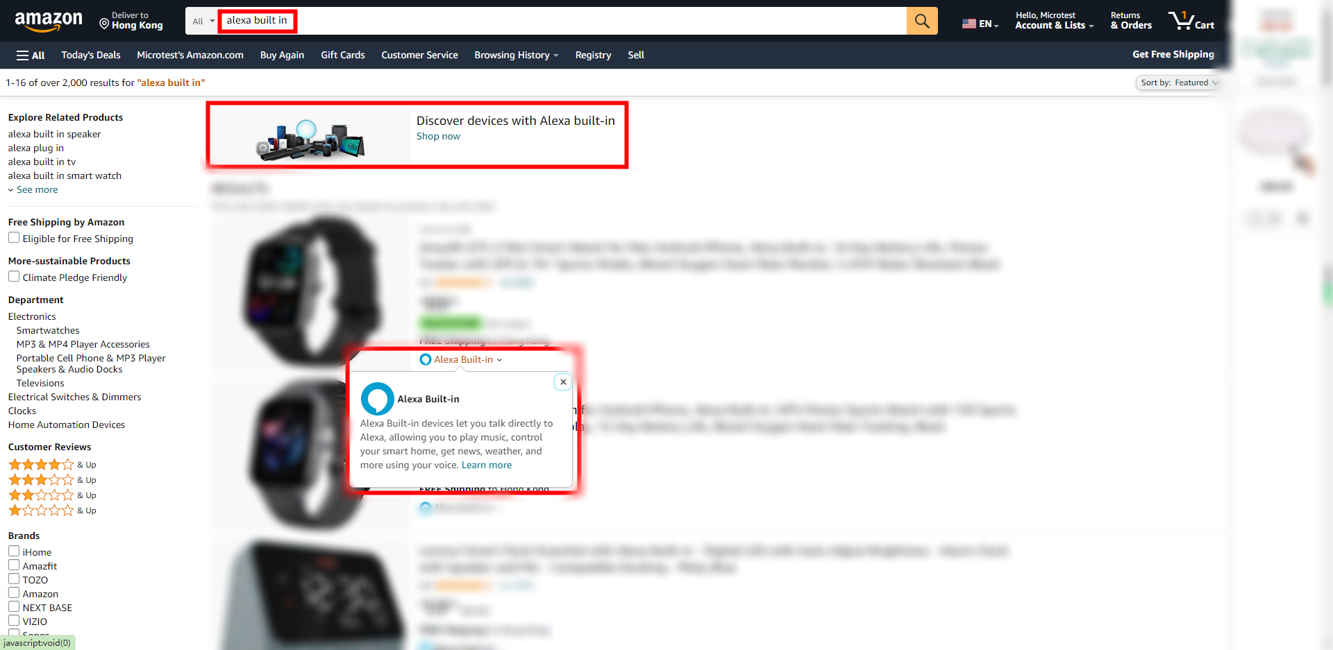 以上是在亞馬遜網站上搜索Alexa Built-in的檢索內容