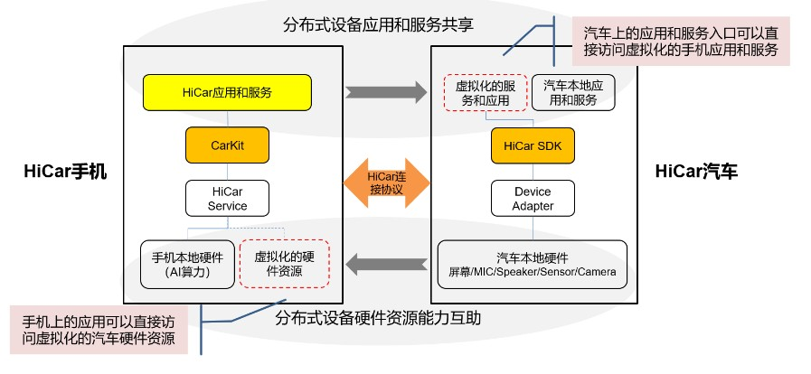 HUAWEI HiCar是華為提供的人-車-家全場景智慧互聯解決方案,HUAWEI HiCar將移動設備和汽車連接起來,利用汽車和移動設備的強屬性以及多設備互聯能力,在手機和汽車之間建立管道,把手機的應用和服務延展到汽車,實現手機為核心的全場景體驗,給消費者創造智慧出行體驗。