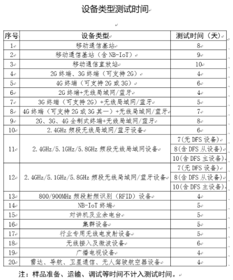 以下是無委官方公布SRRC測試時間(備注:改時間是無委調(diào)試完所有樣品后的測試時間,不含申請,調(diào)試和發(fā)證時間)