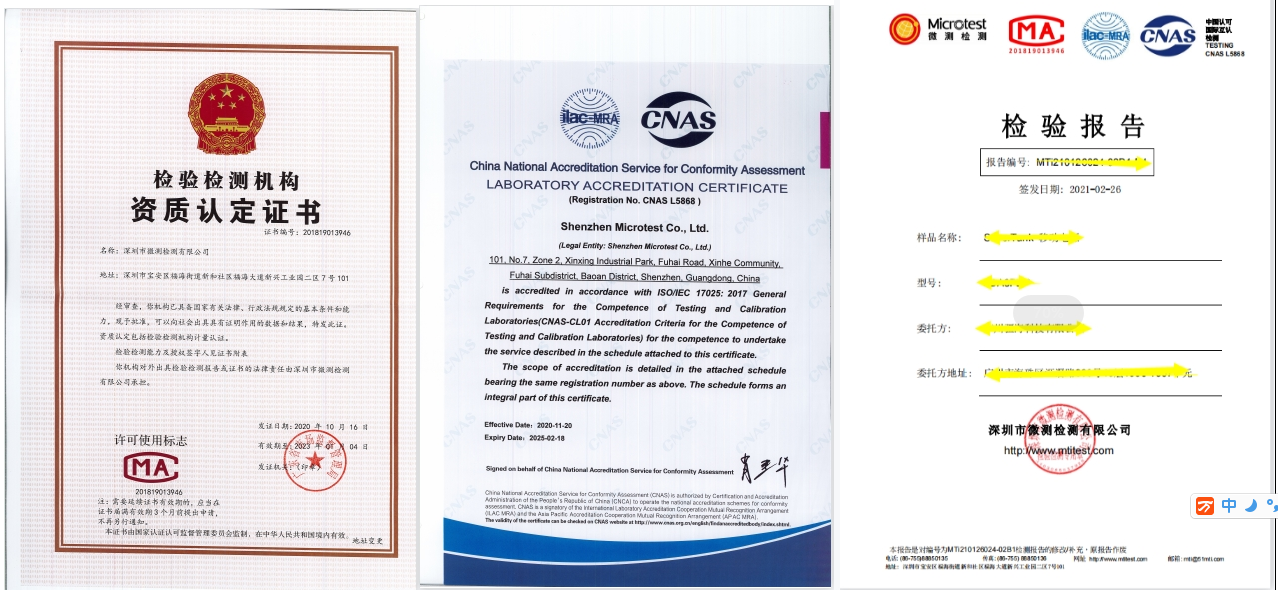 Microtest是國家CNAS、中國計量認證CMA、美國實驗室認可協會A2LA、無線充電聯盟WPC、藍牙認證評估委員會SIG、亞馬遜Amazon等國際機構的認可實驗室。Microtest的使命:讓您的產品通全球!